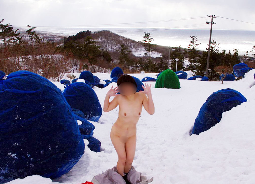 【野外露出エロ画像】他人がやらないことだから挑戦したい!?そのうち死人がでそうな雪の中の野外露出プレイwww