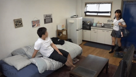 一人暮らしを始めたおにーちゃんの部屋に入り浸る妹…思春期の妹に中出しする生活感がリアルな近親相姦ハメ撮りGIF画像