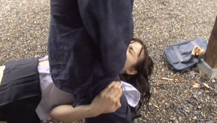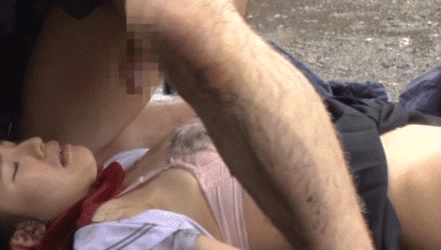 お尻まる出しで野ションベンする女子高生に大興奮…見ていたおじさんにガン突きされる野外レ●プGIF画像
