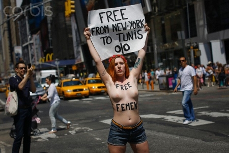 おっぱいまる出しでノーモア・ウォー!!若いおねーちゃんが裸で抗議するトップレスデモwww