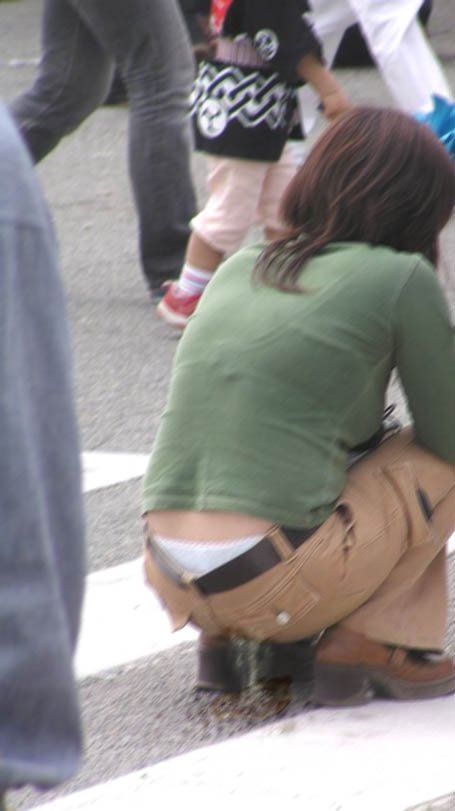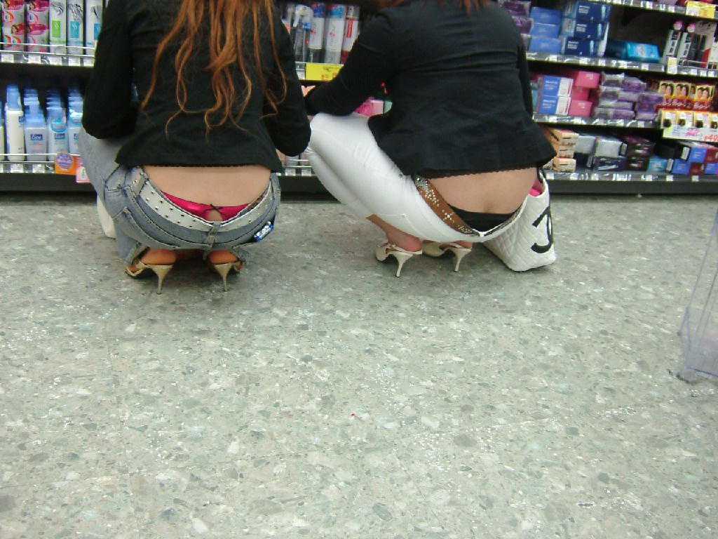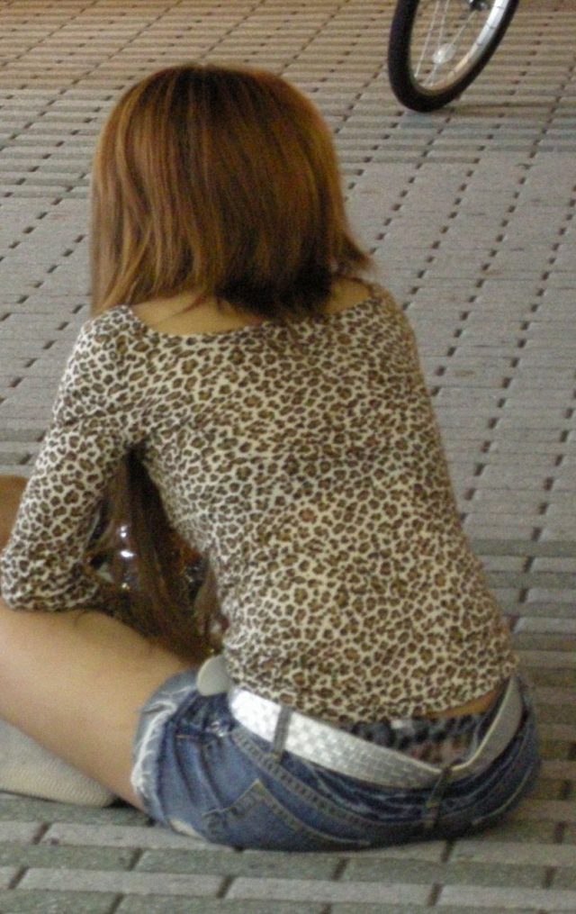 しゃがんでる女の子のパンツがバッチリ…ちょっと嬉しくなる卑猥なお尻!街撮りされたハプニングエロ画像