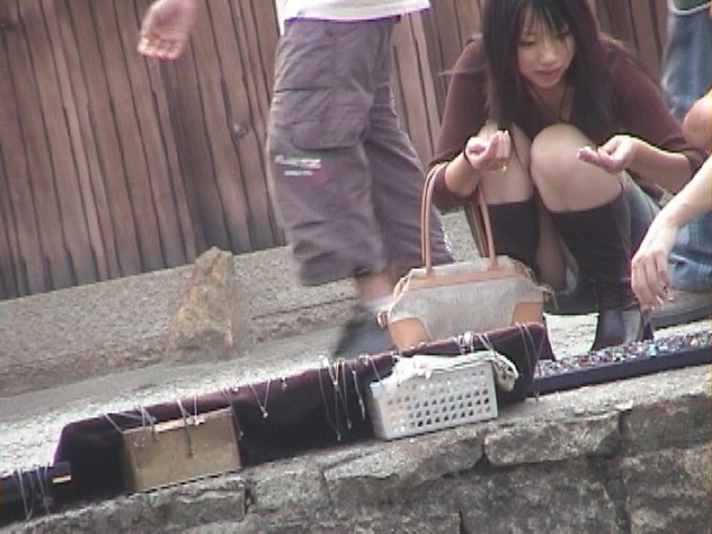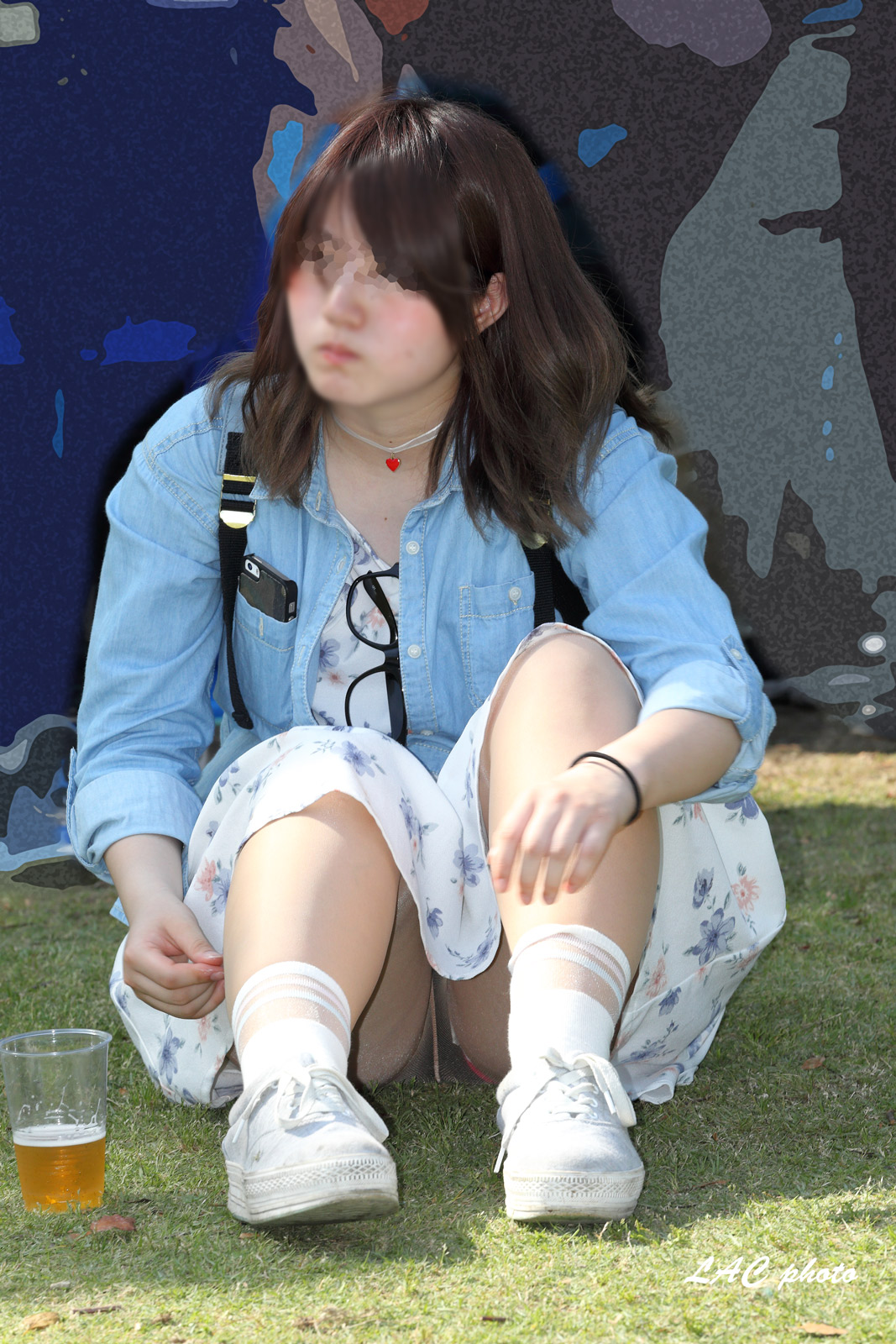 素人の女の子が街中で見せちゃう隙き…パンツまる見えになった足元がエッチなハプニングエロ画像