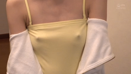キャミソールで乳首ぷっくり…作業中に押しつけてくる女の子に欲情がとまらないノーブラ痴女GIF画像