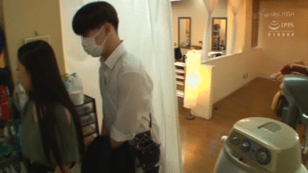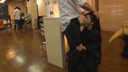 美容師に襲われた女性…ケープの下は全裸!?恥ずかしすぎるプレイに絶頂繰り返す痴漢GIF画像