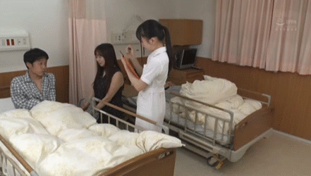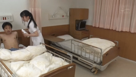 彼女がうたた寝している隙きに…入院患者のチンポを貪る淫乱ナースの寝取りセックスGIF画像