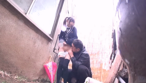 少女を路地裏に連れ込んでわいせつ行為…背徳感が尋常じゃない!パイ○ンニーソがそそる中出しGIF画像