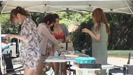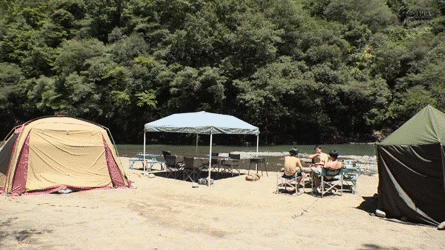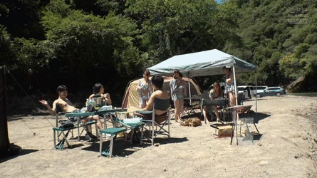キャンプ場で知り合ったママ友グループ…水着から乳輪ポロリ!?若い男の勃起チンポに欲情する痴女セックスGIF画像