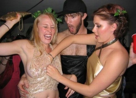 酔っ払った女がエロ過ぎる…おっぱいまる出し!?マンコも見えちゃう外国人パリピのおふざけエロ画像