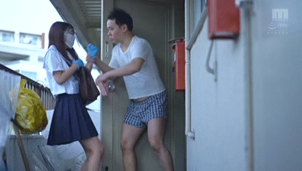 潔癖症の女子高生が清掃ボランティアの最中にゴミ屋敷住人に引きずり込まれる屈辱の中出しレ●プGIF画像