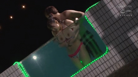 ナイトプールで遊ぶパリピなギャルに痴漢…一人だとなんにもできないギャルに中出しする痴漢GIF画像