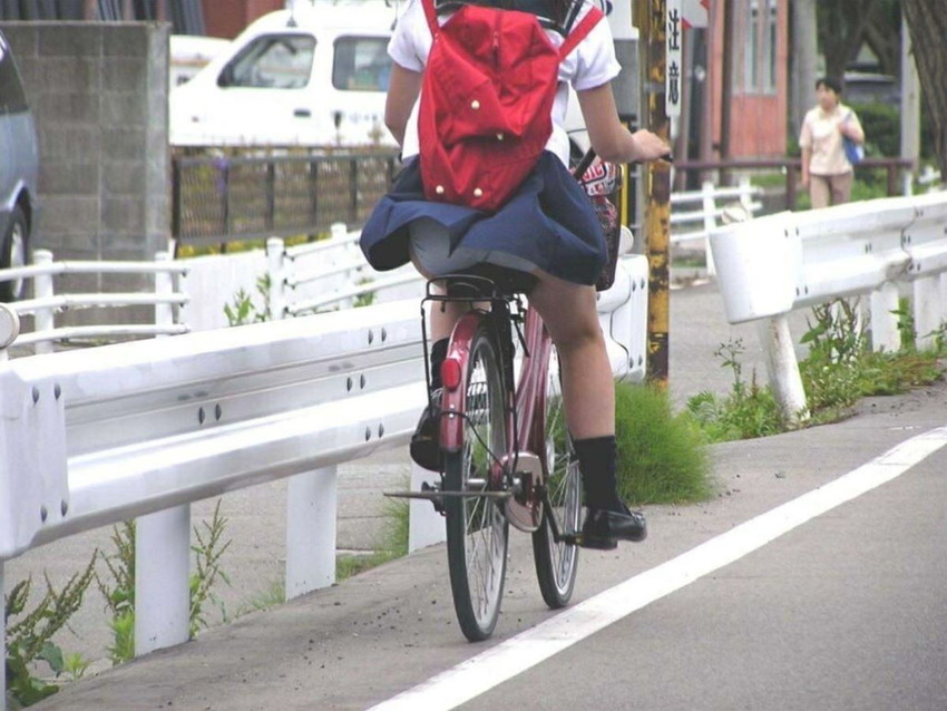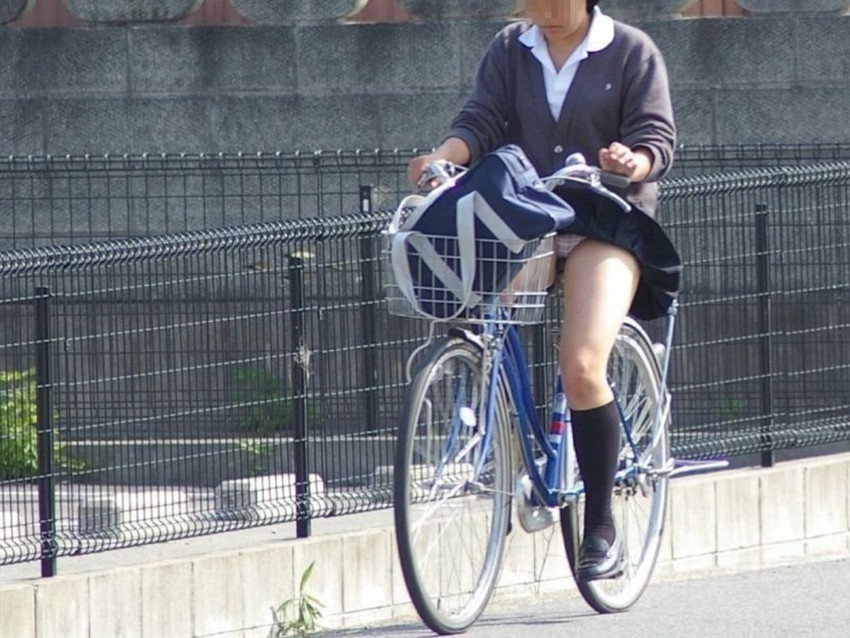 痴女だとしか思えない…ミニスカで自転車に乗ってパンツ見せまくる女の子たちの街撮りエロ画像