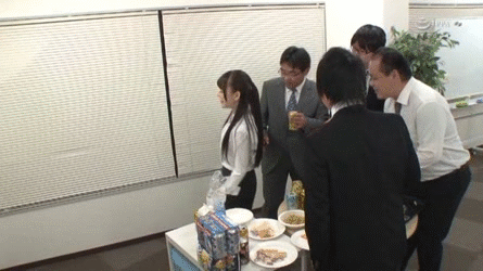 残業中のOLがパンツまる見え…無防備なお尻に我慢できず即ズボ!タイトスカートまくりあげ種付けする中出しGIF画像