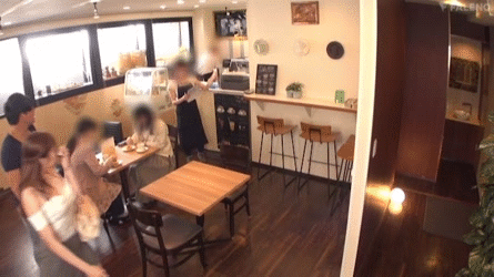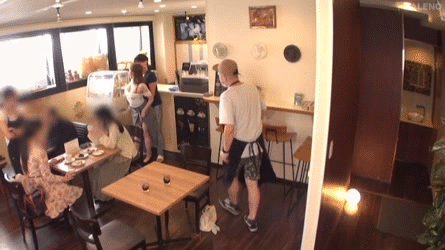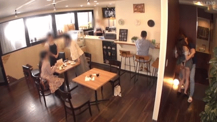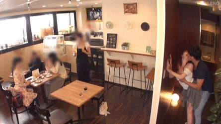 バレたら逮捕される…スリルで狂ったように絶頂!営業中のカフェで隠れて声我慢セックスGIF画像