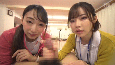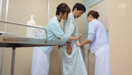 治験バイトに行ったら…ナースに抜かれまくり!?精子を搾り取る痴女たちのハーレム乱交GIF画像