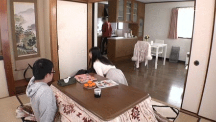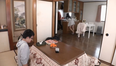 こたつの中でオナニーしていた彼氏の弟を見た女の子が痴女化!?背徳感に燃える中出しGIF画像