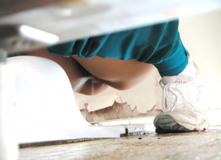 女の子がおしっこしてる姿って卑猥ですよね…ドアの隙間から覗いたマンコがエロ過ぎるトイレ覗きエロ画像