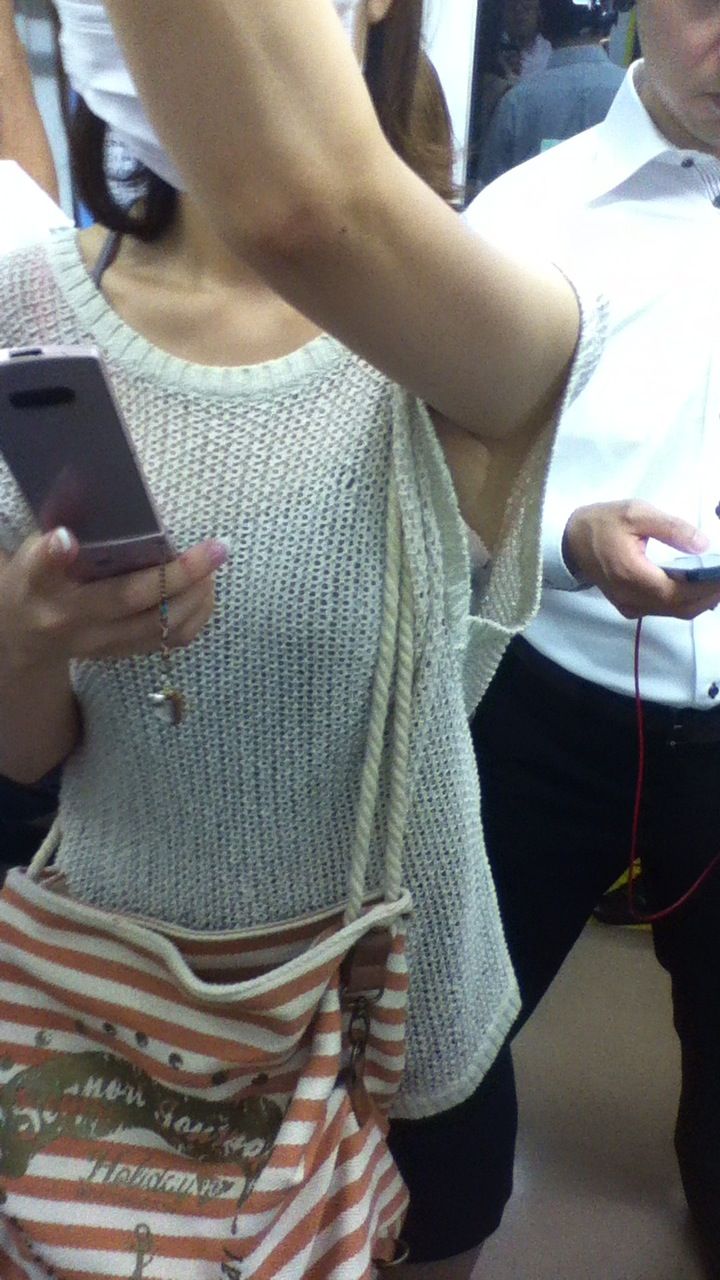 【勃起不可避】つり革を持ってる女性のまる見えな腋に興奮がとまらないんだがwww