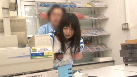 【セ●ハラGIF】パート主婦の悲劇…コンビニのレジカウンター内でセ●ハラされまくりのエロGIF画像
